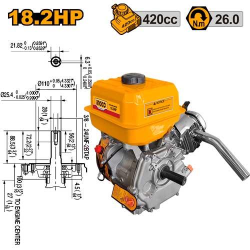 Engine type: single-cylinder, vertical 4-stroke, air-cooled