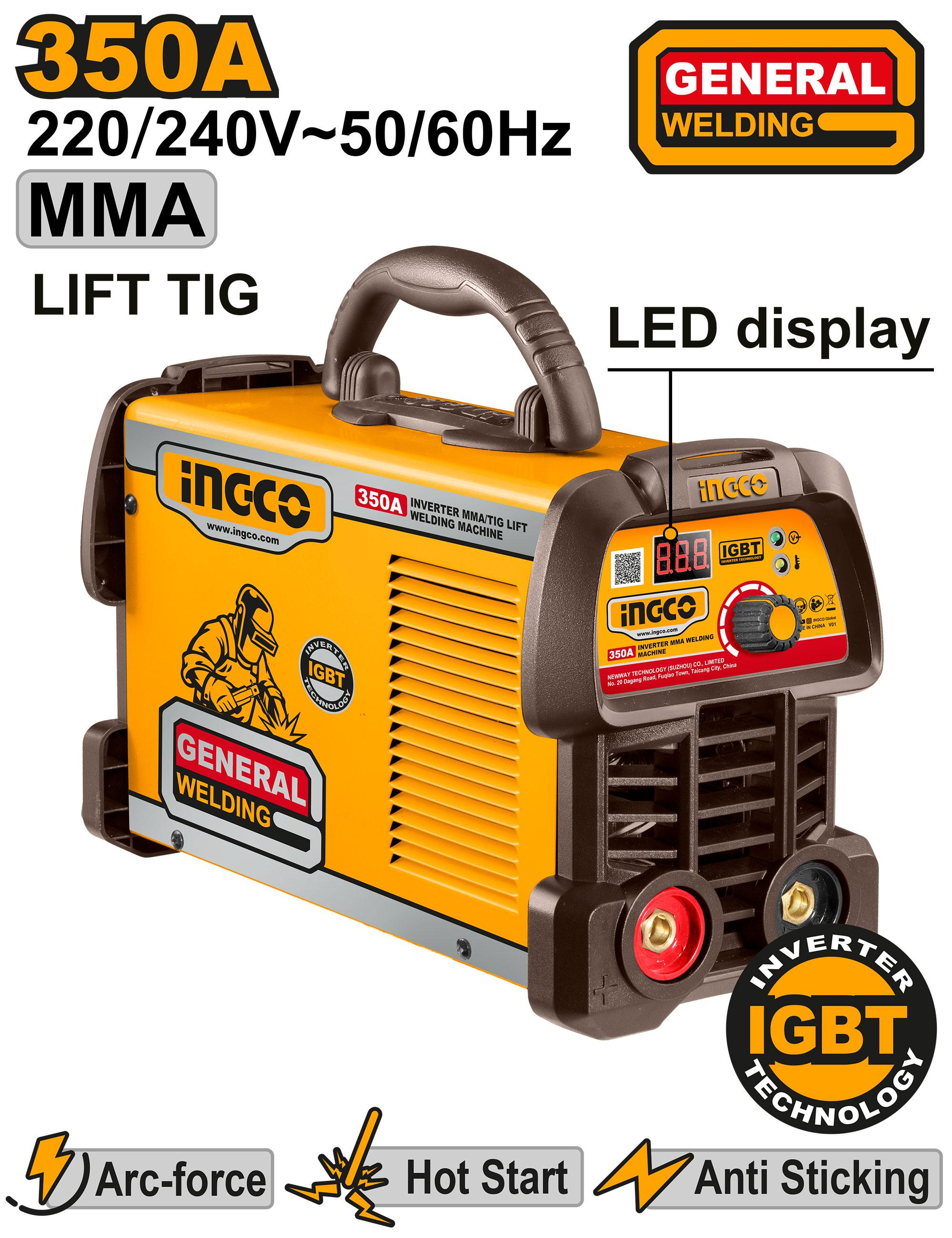 Inverter MMA welding machinelg...Input voltage(V):1~220-240 Frequency(Hz):50/60lg...Output current(A):15-350lg...Duty cycle(%):350A@60%lg...