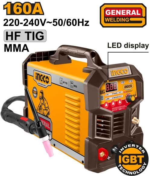 Inverter TIG/MMA welding machinelg...Input voltage(V):1~220-240~50/60Hzlg...TIG Output current(A):15-160 MMA Output current(A):15-160lg...Duty cycle(%):40%@40℃lg...